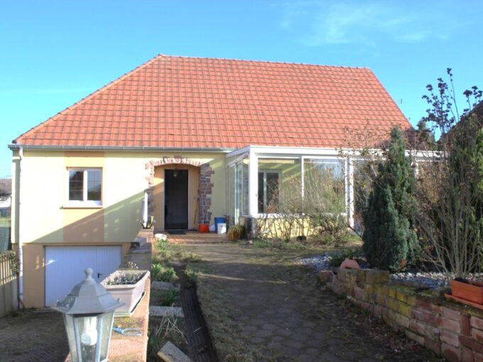 Sainte-Croix-en-Plaine – Maison plain-pied 108 m² avec véranda et sous-sol sur 6,57 ares